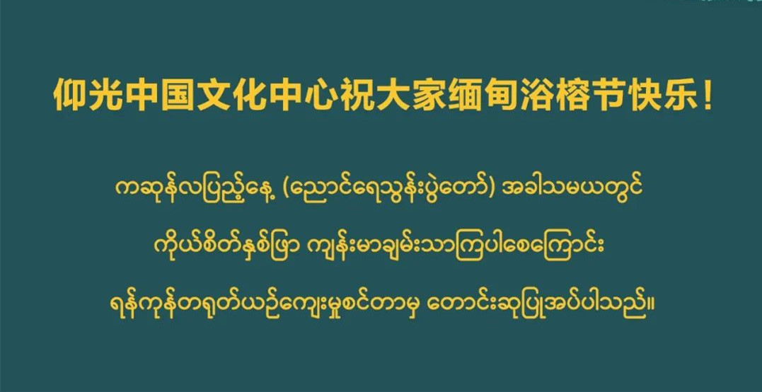 象征泼水节的紫檀花已经盛开,让美丽的花朵带来吉祥,让吉祥的水滴化作幸福。仰光中国文化中心为您送上泼水节的美好祝福,祝您泼水节快乐吉祥!祝愿大家身体健康!幸福平安!请欣赏缅甸舞蹈老师Aye Thandar Bo表演的缅甸泼水节舞蹈。特别鸣谢视频提供:Aye Thandar Bo