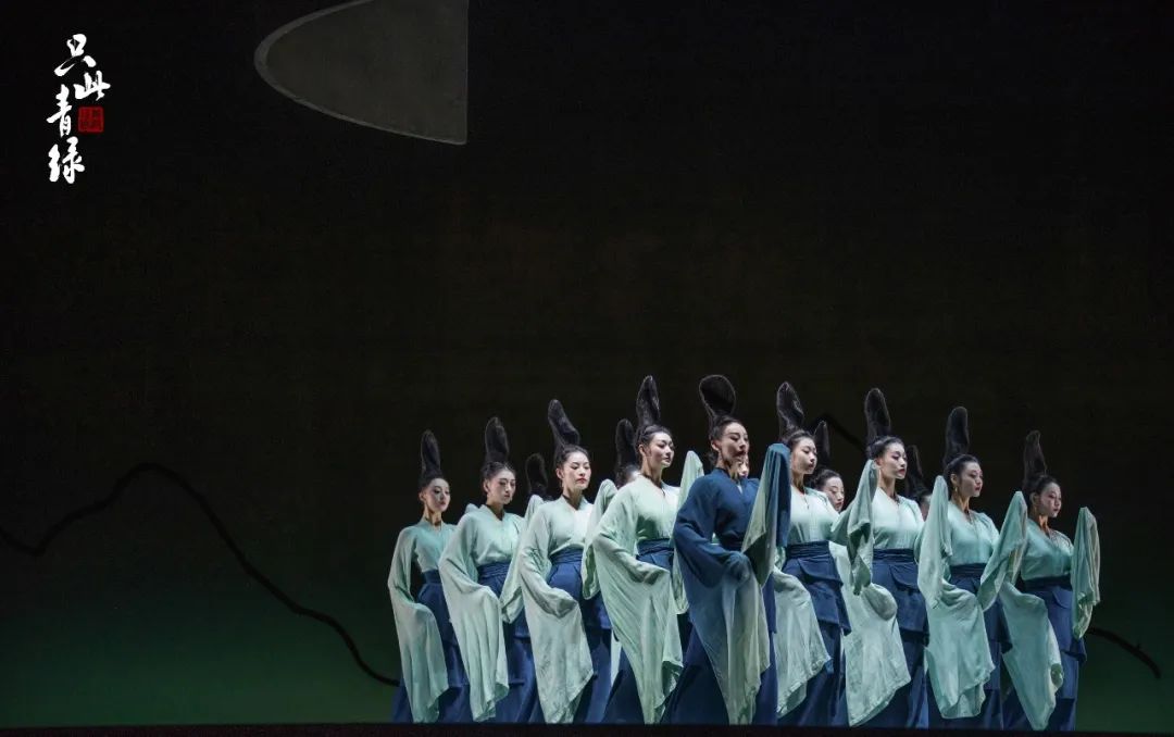 让我们在这磅礴写意的水墨画卷里,在这婀娜动人的清姿漫舞间,看那千年之后,江山依旧在,青绿满尘梦!