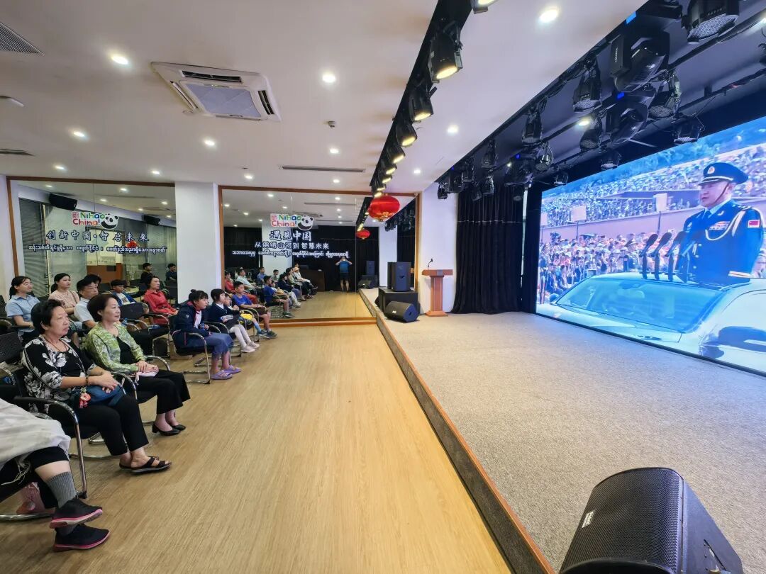9月3日上午,北京天安门广场举行纪念中国人民抗日战争暨世界反法西斯战争胜利80周年大会,不少缅甸华人华侨一早前往仰光中国文化中心,通过中心多功能厅的大屏幕,观看盛大的阅兵仪式直播。