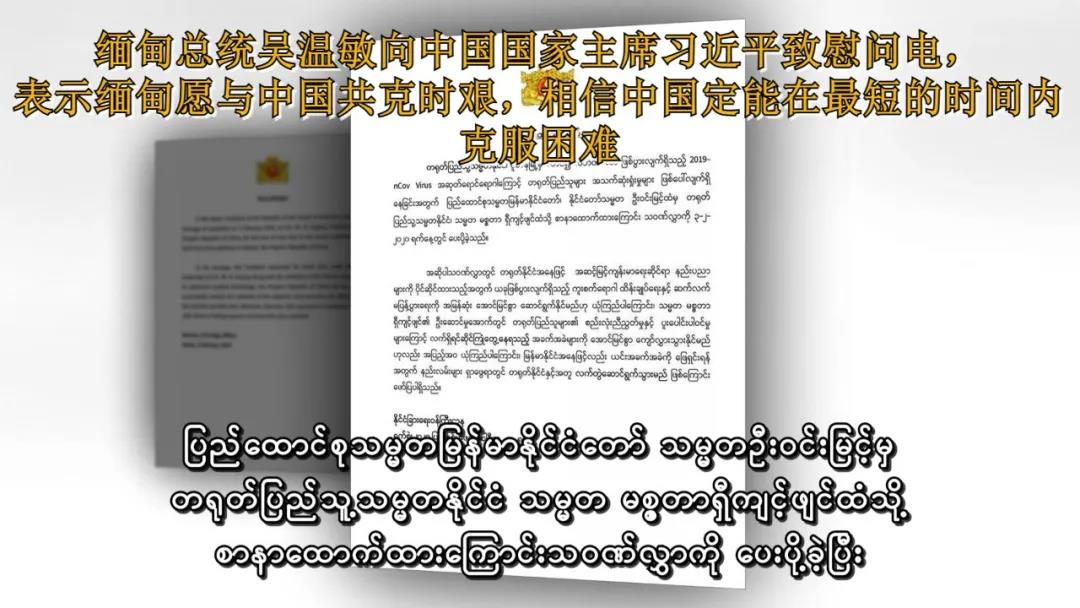 今年年初,中国国家主席习近平应邀对缅甸进行国事访问,访问期间,两国领导人一致同意致力于构建中缅命运共同体,此访取得了历史性的成果。 命运共同体是同甘共苦,休戚与共。缅甸政府和人民在此次抗击疫情中给予中方坚定支持,用实际行动诠释了中缅命运共同体的内涵。温敏总统向习近平主席致信慰问,表示缅甸愿同中国密切合作,共克时艰。缅甸政府、企业和多方人士向中方捐赠抗疫物资。缅甸民众还在仰光大金塔等地为中国祈福、录制视频为武汉加油。凡此种种,令我们深受感动。 日前,缅甸出现新冠肺炎疫情,中方作为守望相助的近邻和伙伴,通过分享抗疫经验、捐赠医疗物资、派遣专家团队等多种方式,积极支持缅方...