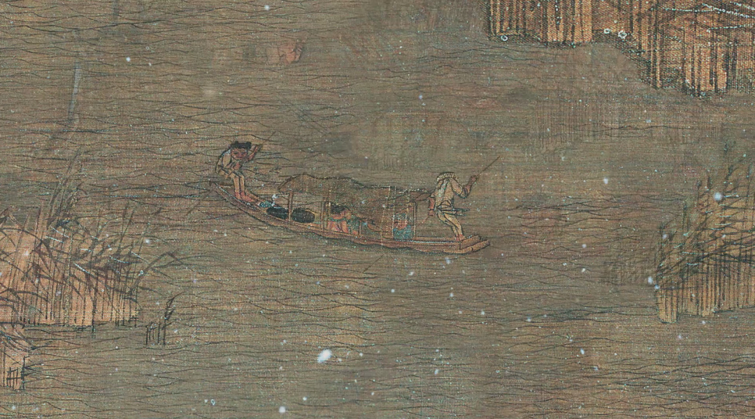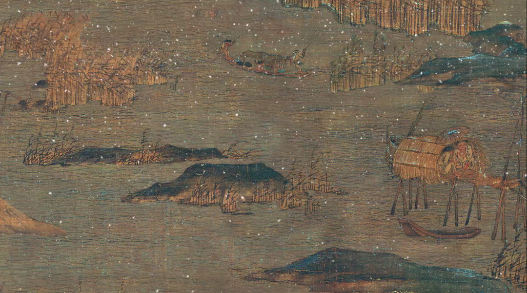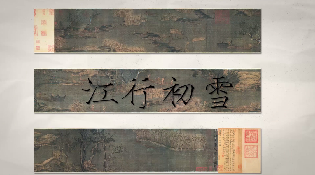 《江行初雪图》是五代时期画家赵干创作的一幅绢本水墨设色画作,该作品纵25.9cm,横376.5cm,现藏于台北故宫博物院。