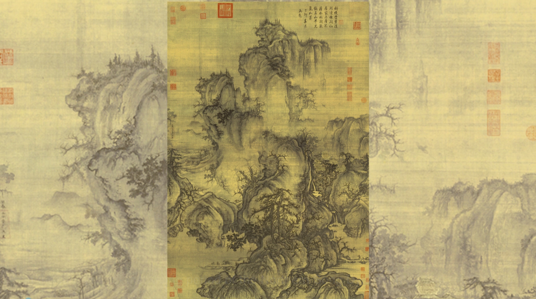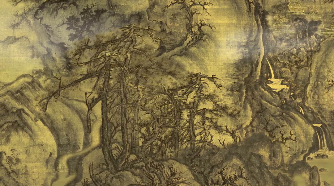 《早春图》描绘的是初春时期北方山中的景象,采用全景式构图,融高远、深远、平远技法于一画,整幅画面呈现强烈的纵深感。通过对山的细致刻画,成功地把冬去春来、大地复苏、万物更替的季节变化表现出来。