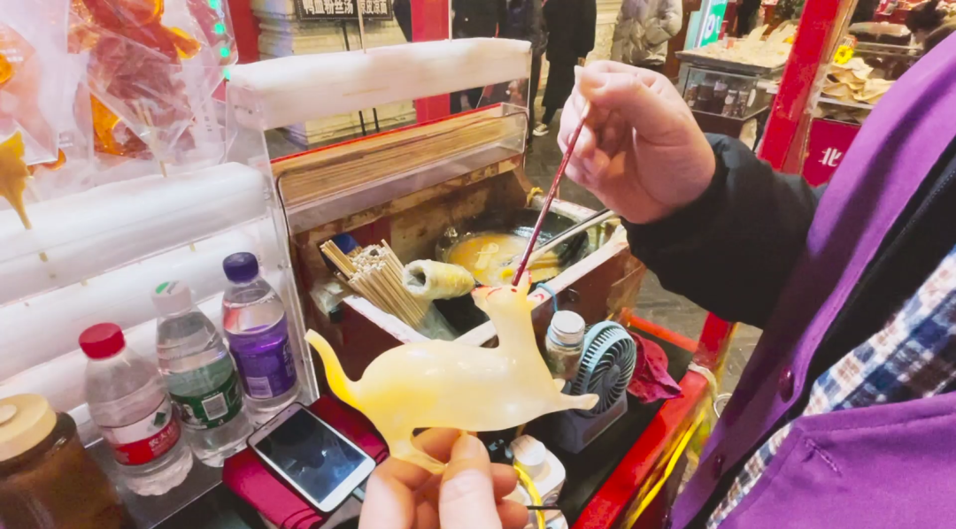 “吹糖人”是中国一项传统的民间手工艺,至今已有600多年的历史。“吹糖人”艺人通过吹、拉、捏等手法,造就出一个个生动的小动物,着实让人喜爱,特别是孩子们更是情有独钟。每当看到晶莹剔透的糖人,总会唤起人们对童年的美好回忆。