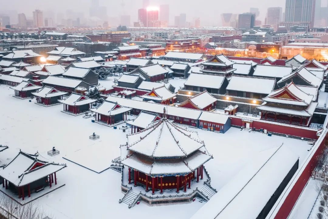 白雪与砖红碰撞出沈阳千年古韵,擦撞出城市的记忆,厚重与静美,在雪花中绽放,在屋瓦中涌动。