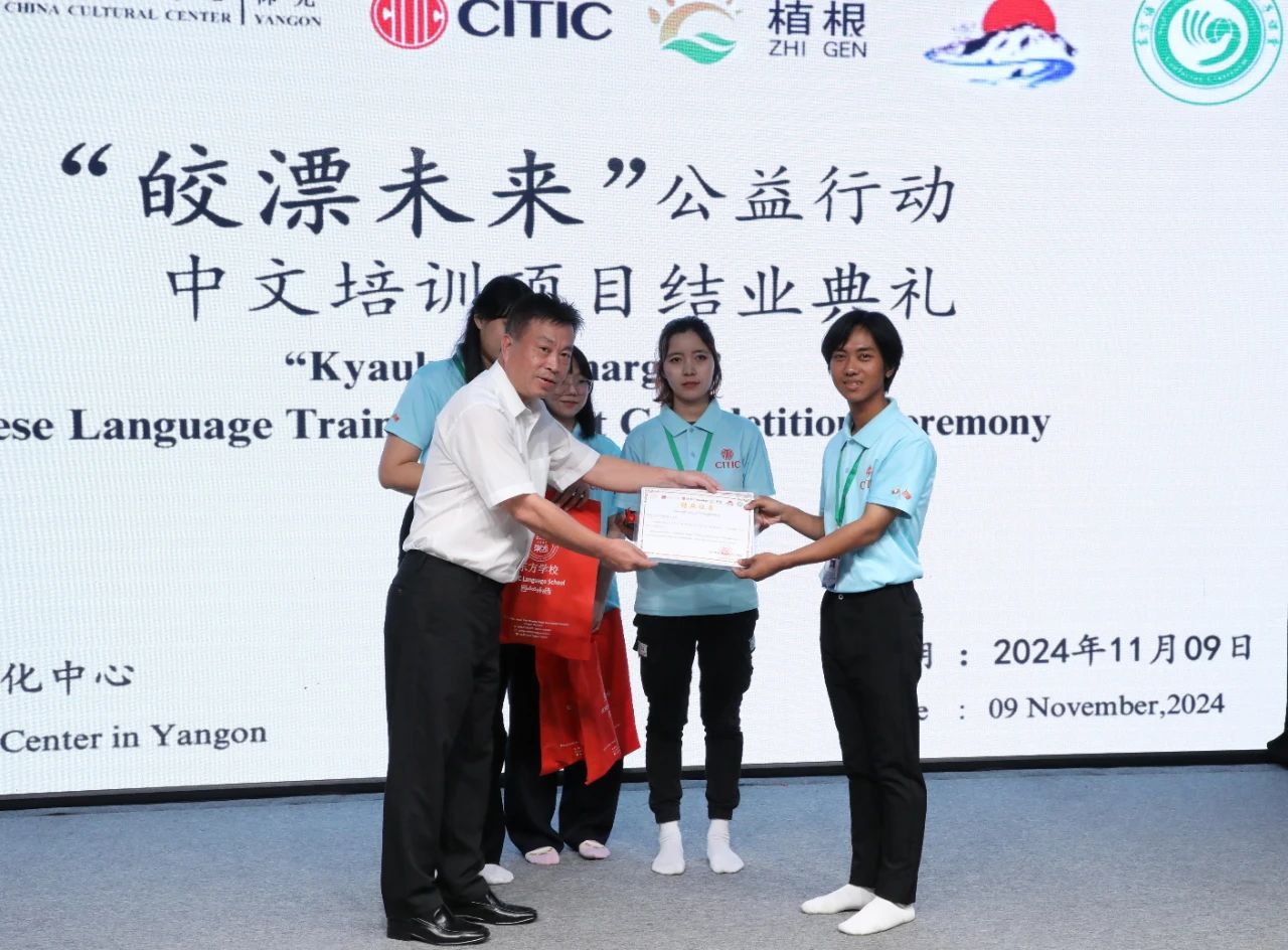 11月9日,为期6个月的“皎漂未来”中文培训班结业仪式在仰光中国文化中心举行。结业仪式上,参训学员以中国歌舞、诗词朗诵等10余个节目的形式展示了6个月以来的学习成果,中信缅甸副总经理马传福、仰光中国文化中心主任向剑波、缅甸东方学校校长王崇喜及全体参训学员参加了结业仪式。 马传福副总经理在结业仪式讲话上称,汉语被称为世界上最难的语言之一,他祝贺同学们克服困难,坚持了下来,勉励学员们在学习汉语的道路上坚持下去,为个人的发展提供更多的机会和选择,为中缅日益加深的经济联系做出贡献。缅甸中信将进一步与仰光中国文化中心合作,继续针对缅甸各届民众开办中文培训活动。马传福副总经理总结讲话 ...