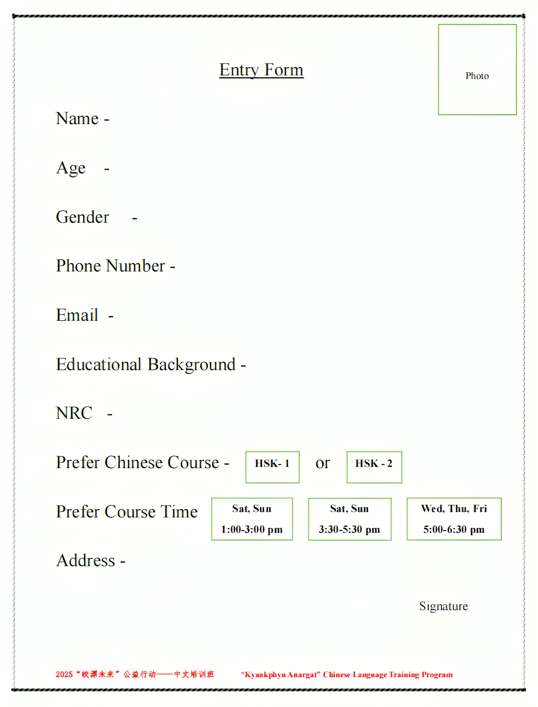 ၂၀၂၅ ခုနှစ် “ကျောက်ဖြူအနာဂတ်” တရုတ်ဘာသာစကားသင်တန်းအတွက် သင်တန်းသားခေါ်ယူခြင်း