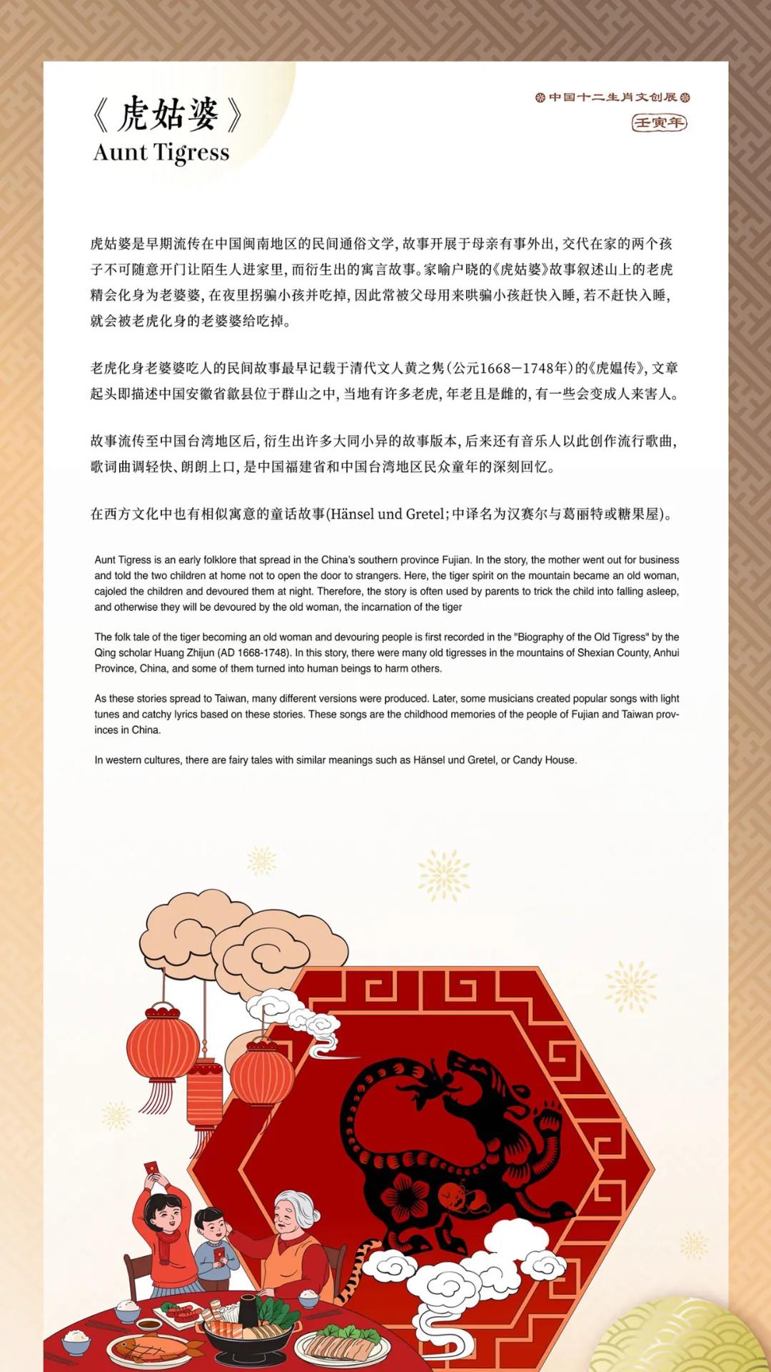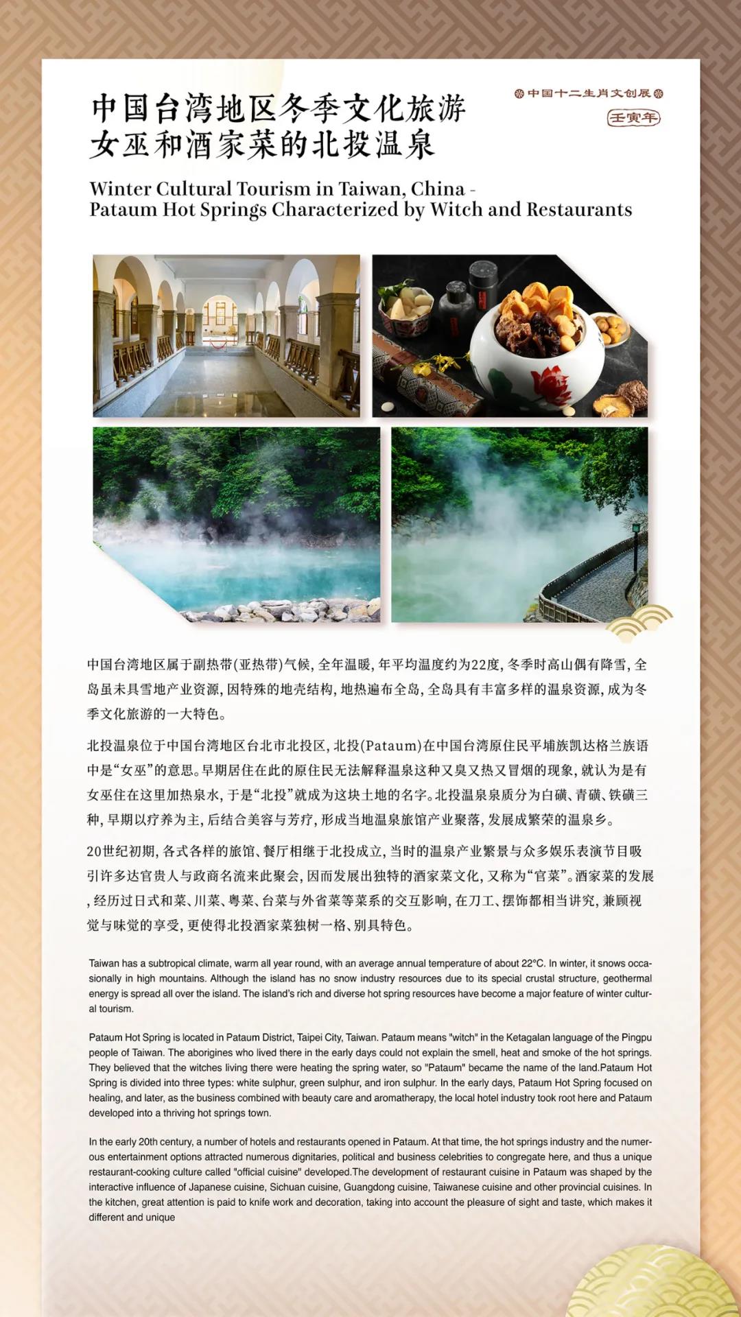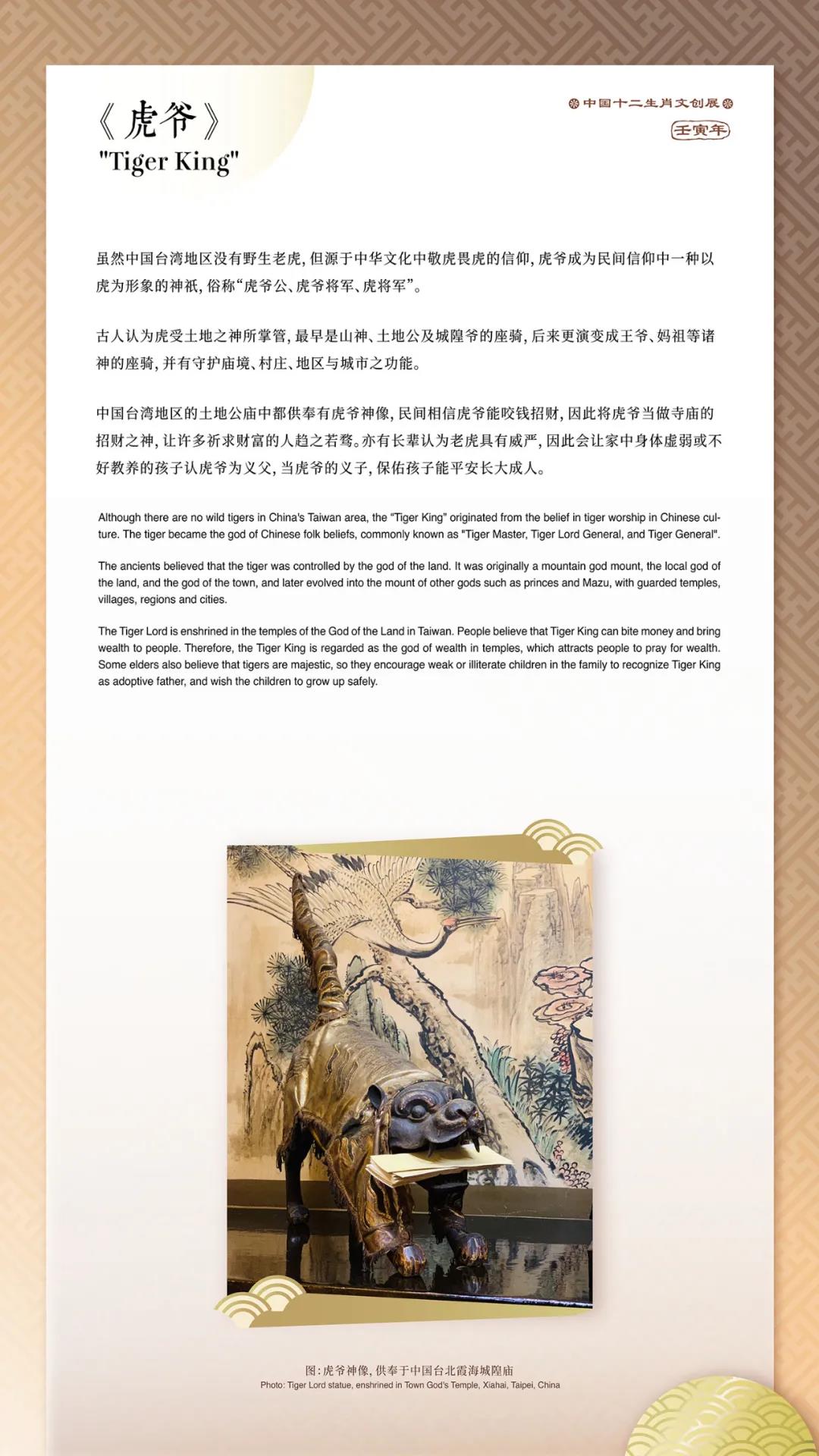 ယခုပြပွဲတွင် ကျားနှစ်ရာသီခွင်ယဉ်ကျေးမှုပြပွဲ၊ ဆောင်းရာသီယဉ်ကျေးမှုခရီးသွားလာရေးပြပွဲ၊ ကျားနှစ်ယဉ်ကျေးမှုလက်ရာဖန်တီးမှုပြပွဲ၊ ကျားနှစ်လက်မှုပညာလေ့လာခံစားမှုပွဲ စသည့် ကဏ္ဍ (၄) ခု ပါဝင်ပါသည်။ ပြပွဲကို ရုပ်ပုံစာသား၊ ဗီဒီယိုများနှင့် ပေါင်းစပ်ထားပြီး ဖျော်ဖြေမှုများအနက်မှ သင်ယူလေ့လာသည့် သင်ကြားမှုပုံစံနှင့် အပြန်အလှန်ပါဝင်မှုများမှတစ်ဆင့် ဆန်းသစ်ဖန်တီးမှုများဖြင့် အသွင်စုံလင်ပြီး ကြွယ်ဝလေးနက်သည့် တရုတ်ရိုးရာပွဲတော်ယဉ်ကျေးမှုများကို တင်ဆက်ထားကာ ထိုင်ဝမ်ရေလက်ကြားနှစ်ဖက်ကမ်းယဉ်ကျေးမှုနှင့် ခရီးသွားအရင်းအမြစ်၏ လက်တွဲပူးပေါင်း ဆောင်ရွက်မှုများမှတစ်ဆင့် လာမည့်နှစ်အတွက် သင့်မြတ်ခြင်းမင်္ဂလာနှင့် ကံကောင်းခြင်းများရရှိရန် တောင်းဆုခြွေထားပါသည်။