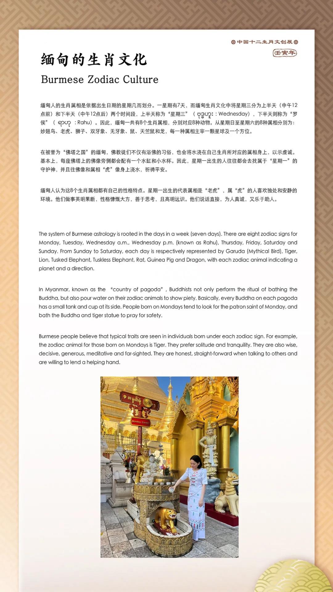 တရုတ်နှစ်သစ်ကူးကျားနှစ်သို့ ရောက်ရှိလာချိန်တွင် တရုတ်ယဉ်ကျေးမှုချစ်ကြည်ရေးအသင်းမှ ကြီးမှူးဆောင်ရွက်ပြီး ရန်ကုန်တရုတ်ယဉ်ကျေးမှုစင်တာနှင့် Beijing CIEA Danqing Exhibition LTD. မှ တာဝန်ယူဆောင်ရွက်၍ GTN9 ဝက်ဘ်ဆိုဒ်မှ ပံ့ပိုးဆောင်ရွက်ကာ Mason Creative & Strategy မှ စီမံဆောင်ရွက်သည့် “ဩဇာဟိတ်ဟန် ကျားတို့မာန် - တရုတ်(၁၂)ရာသီခွင်ယဉ်ကျေးမှုပြပွဲ” ကို ၂၀၂၂ ခုနှစ်၊ ဖေဖော်ဝါရီလ (၅) ရက်နေ့၌ ရန်ကုန်တရုတ်ယဉ်ကျေးမှုစင်တာ၏ WeChat Official Account ၊ Facebook စာမျက်နှာနှင့် Official Website များတွင် တစ်ပြိုင်နက်တည်း တင်ဆက်သွားမည် ဖြစ်သည်။ အွန်လိုင်း “Cloud” ပေါ်၌ တရုတ်ရာသီခွင်ယဉ်ကျေးမှုအကြောင်းများကို ဝေမျှပြီး တရုတ်နွေဦးနှစ်သစ်ကူးပွဲတော်ကို အတူတကွ ဖြတ်သန်းရန် မြန်မာပရိသတ်များအား ဖိတ်ခေါ်အပ်ပါသည်။