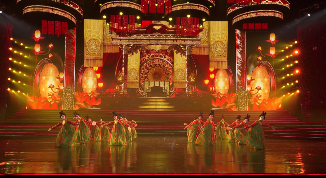 ဖြူစင်နုနယ်၍ ချစ်စဖွယ်ကောင်းသော ထန်မင်းဆက်(Tang)ခေတ်နန်းတွင်း အပျိုတော်လေးတစ်စု၏ မြူးကြွသော ရှေးခေတ်ဂီတသံစဉ်စည်းချက်များအလိုက် သိမ်မွေ့ညင်သာစွာ ကခုန်နေကြသည်မှာ ရှေးဟောင်းပန်းချီကားထဲမှ ထွက်လာသယောင်ပင်ဖြစ်ပြီး သင့်အား စည်ပင်ဝပြောသော ထန်မင်းဆက်ခေတ်ကြီးကို တစ်ဖန်ပြန်လည် ရောက်ရှိမြင်ယောင်စေကာ တော်ဝင်နန်းတွင်း ဧည့်ခံပွဲအခမ်းအနားကြီး တစ်ခုကို တက်ရောက်နေသည့်အလား ခံစားရစေမည်ဖြစ်သည်။