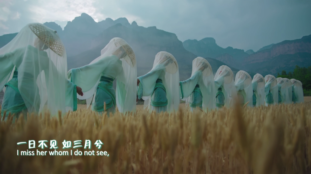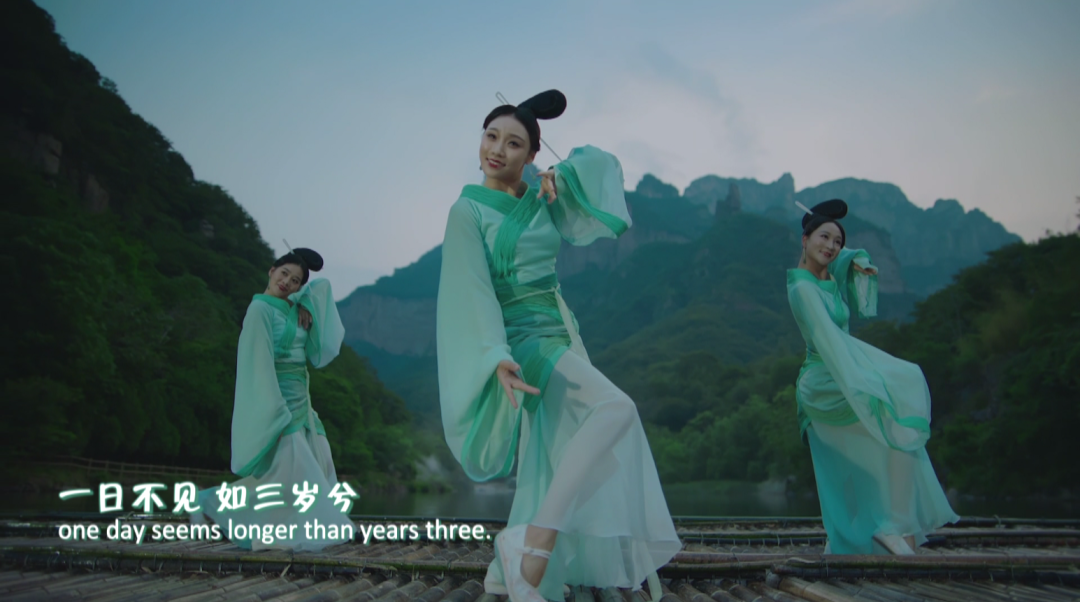 “လွမ်းရပြီလေ” အမျိုးသမီးအဖွဲ့လိုက်အကသည် တေးသံသာယာငြိမ့်ညောင်းပြီး ကကွက်များ တင့်တယ်လှပကာ တရုတ်အမျိုးသမီးရှေးဟောင်းဂန္ထဝင်အက၏ အလှတရားများ ပေါ်လွင်ထင်ရှားလှသည်။ ယင်းအကသည် မနက်ခင်းအချိန်အခါ၌ လူငယ်အမျိုးသားနှင့် အမျိုးသမီးငယ်တို့ လက်တောကွက်များရှိ လမ်းငယ်လေးပေါ်တွင် အမှတ်မထင်တွေ့ဆုံရာမှ ချစ်ကြိုက်ခဲ့ခြင်းကို ဖော်ပြထားသည်။ “တစ်နေ့မတွေ့ရလျှင်ပင် သုံးရာသီစာ ရှည်ကြာသည့်အလား” ရင်ထဲက လွမ်းဆွတ်တမ်းတနေပုံများ၊ ထိုသူနှစ်ဦးတို့ အပြန်အလှန် မေတ္တာမျှနေပြီး ချိုမြိန်မှုနှင့် ပူဆွေးမှုများ ရောယှက်ရှုပ်ထွေးနေရသည့် စိတ်ခံစားချက်များဖြင့် သွယ်ဝိုက်ဖော်ပြတတ်သော သဘောရှိသည့် တရုတ်ရှေးအခါက ချစ်ခြင်းမေတ္တာ၏ အလှရသများကို ထင်ဟပ်ပြသထားပါသည်။