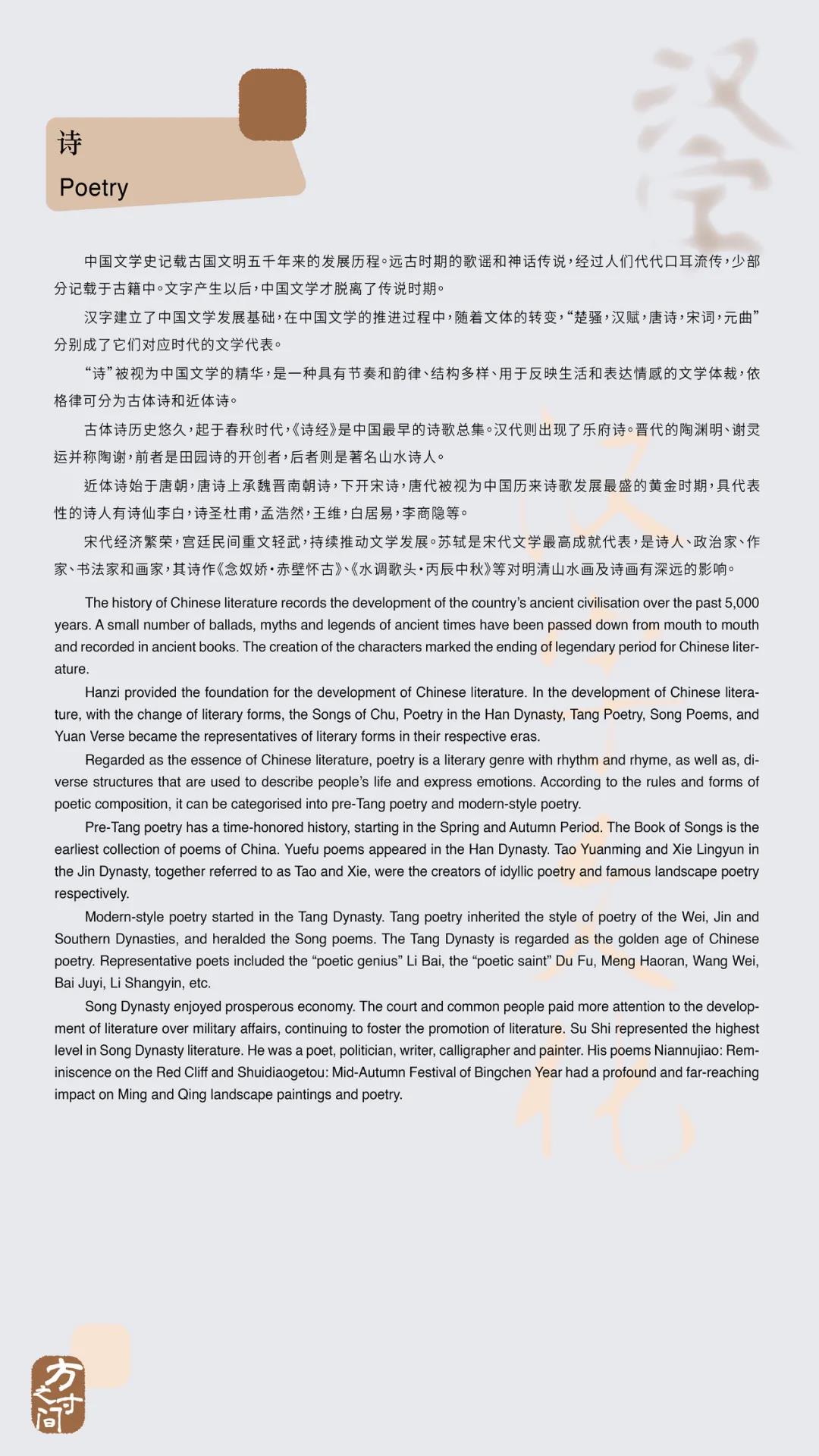 တရုတ်ယဉ်ကျေးမှုအသင်း (Chinese Culture Friendship Association)၊ ရန်ကုန်တရုတ်ယဉ်ကျေးမှုစင်တာ၊ ဆောင့်ရှင်း(Shaoxing) ယဉ်ကျေးမှုနှင့် ခရီးသွားလုပ်ငန်းစု၊ လန်ထင်(Lanting) တရုတ်မင်စုတ်ချက်လက်ရေးလှပြတိုက် အစရှိသည်တို့မှ ပူးပေါင်းစီစဉ်ထားသည့် “စတုရန်းကွက်လေးများအကြား - တရုတ်အက္ခရာစာလုံး(Hanzi) ယဉ်ကျေးမှုဖန်တီးခြင်းနှင့် ခရီးသွားပြပွဲ”တွင် တရုတ်အက္ခရာစာလုံး (Hanzi)များ၏ မူလအစဖြစ်ပေါ်လာပုံ၊ စာလုံးသဏ္ဌာန်ဖွဲ့စည်းပုံ၊ ကမ္ဘာ့ဒြပ်မဲ့ယဉ်ကျေးမှုအမွေအနှစ်စာရင်းဝင် တရုတ်မင်စုတ်ချက်ရေးခြင်းနှင့် သစ်သားစာလုံးထွင်းပုံနှိပ်ခြင်း အကြောင်းအရာများကို အစီအစဉ်တကျ ပြင်ဆင်ပြီး ရှေးတရုတ်ယဉ်ကျေးမှု ဂန္တဝင်မြောက်လက်ရာများထဲမှ အထင်ကရပုဂ္ဂိုလ်တို့၏ ကဗျာစာသားများကို ဖွင့်ဆိုရှင်းလင်းထား၍ ပရိသတ်တို့အတွက် ကဗျာဆရာများ၏ စကားလုံးအသုံးအနှုန်း အလှအပလေးများမှတစ်ဆင့် တရုတ်ဒြပ်မဲ့ယဉ်ကျေးမှုအမွေအနှစ် လေ့လာရေးခရီးစဉ်ထံ ခေါ်ဆောင်သွားကာ တရုတ်အက္ခရာစာလုံး (Hanzi)၏ အတွင်းအနှစ်သာရရှိ ယဉ်ကျေးမှုဆွဲဆောင်မှုကို ခံစားရစေမည် ဖြစ်ပါသည်။