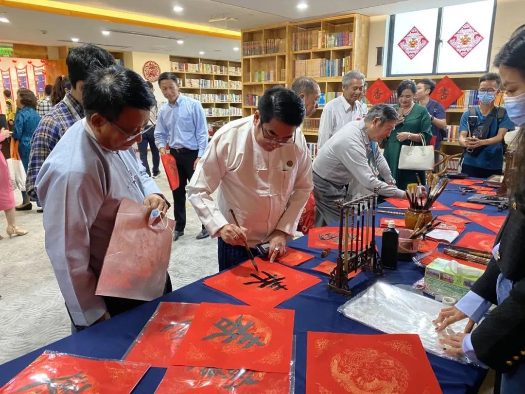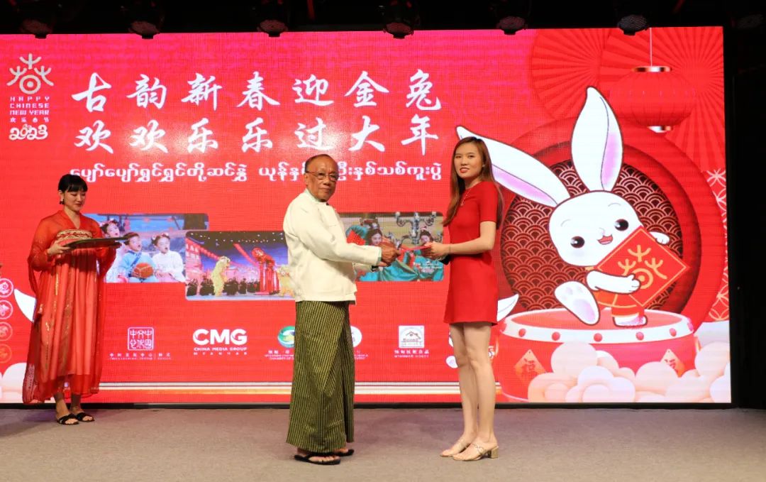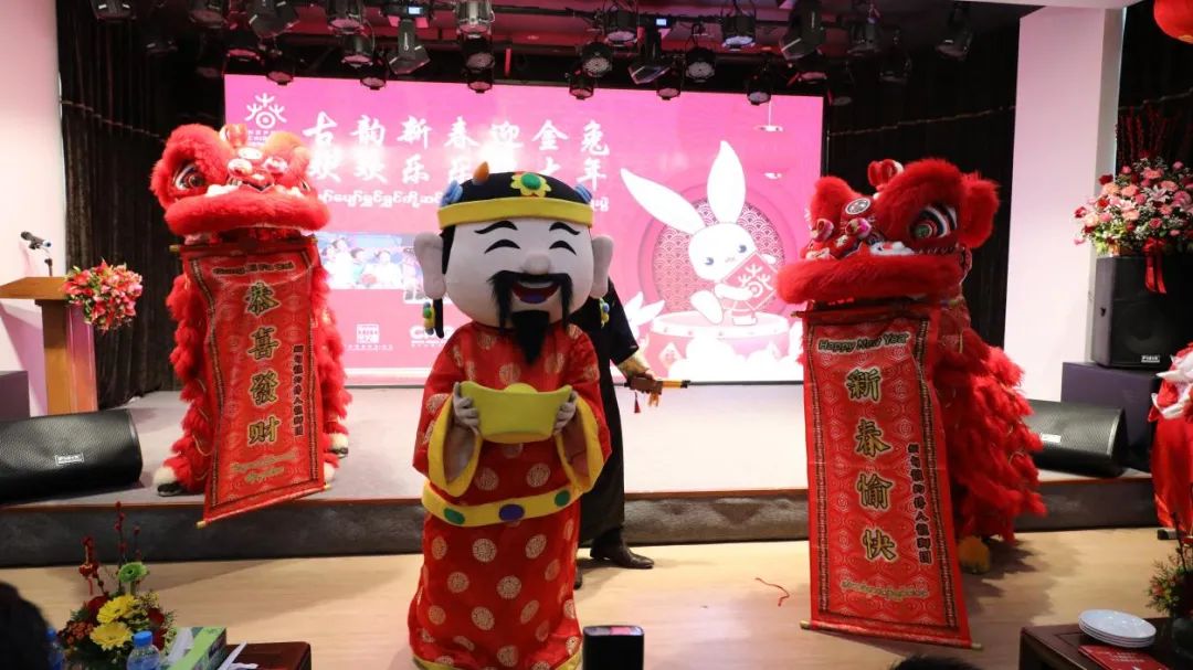 春节,是中华民族最隆重的传统节日,蕴含着辞旧迎新、合家团圆的美好寓意。在中国兔年新春来临之际,为增进中缅两国民众相互了解和传统胞波友谊,仰光中国文化中心和缅甸“一带一路”商会共同主办“古韵新春迎金兔 欢欢乐乐过大年”联欢活动于1月18日下午在仰光中国文化中心举行。仰光中国文化中心、缅甸中国企业商会、缅甸“一带一路”商会、缅甸旅游总协会、仰光文化艺术大学、缅甸各民族总商会、缅甸工商联合会、缅甸影视协会、云南会馆、缅甸广东商会、缅甸果敢商会、缅中经济交流合作协会等相关负责人以及缅甸教育机构、中缅媒体和观众共80余人出席联欢活动。