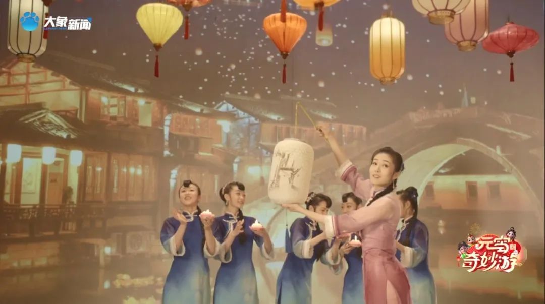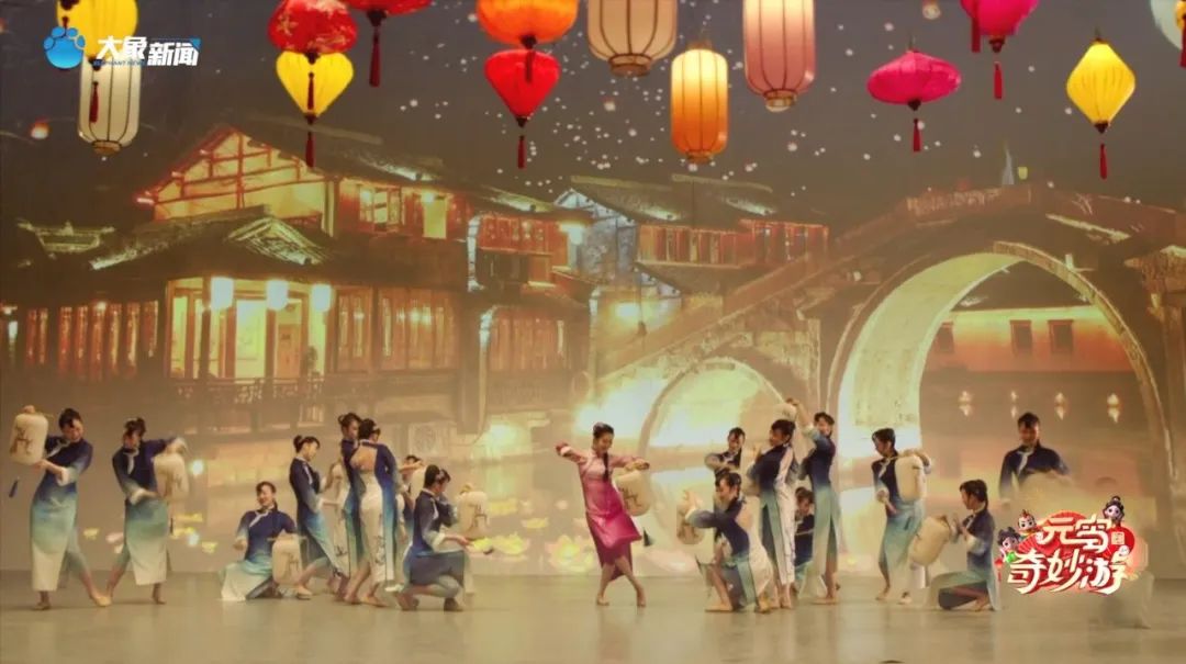 舞蹈《从前慢》展现了江南水乡身着旗袍的女子在元宵夜演绎“提灯走桥,走百病”的传统风俗。温婉的江南女子用一盏盏灯笼点亮心中美好的愿景。