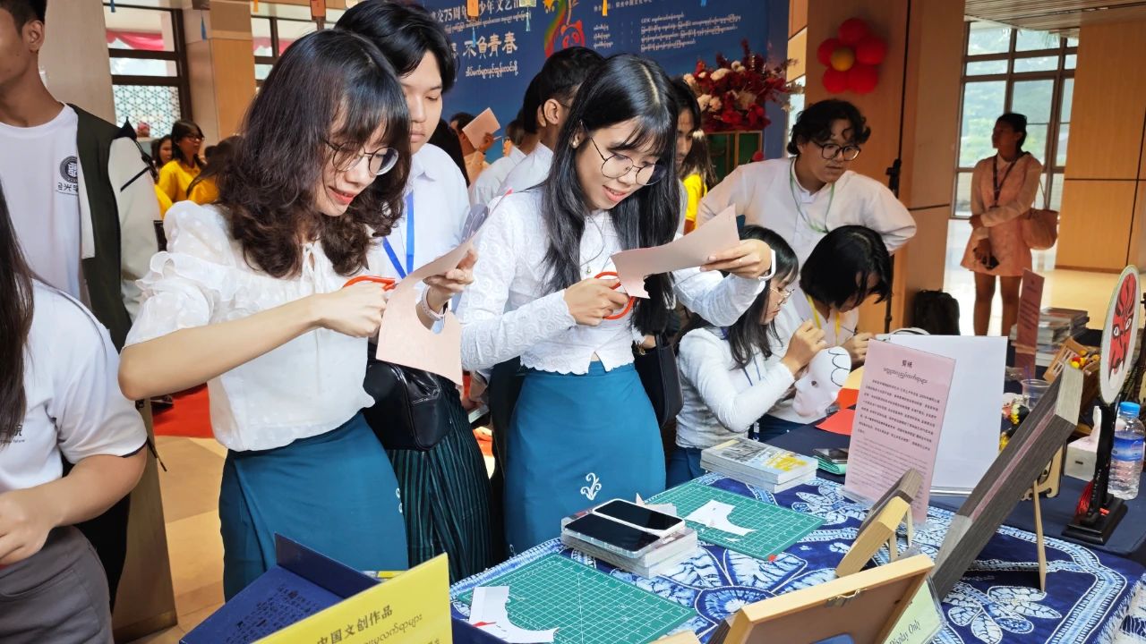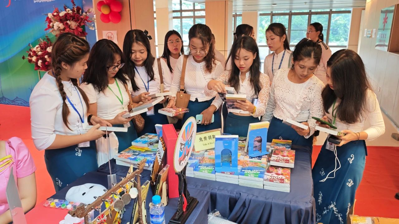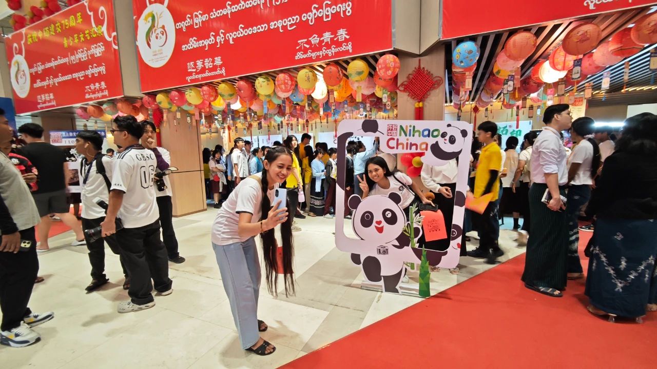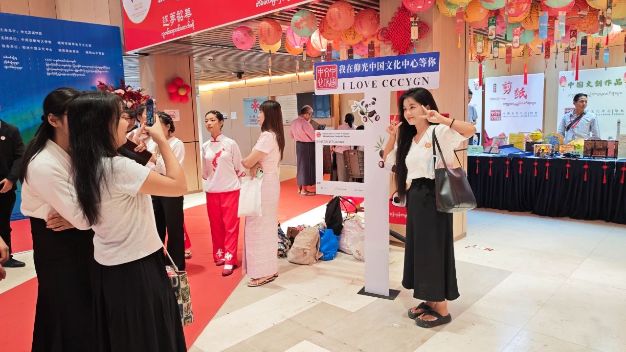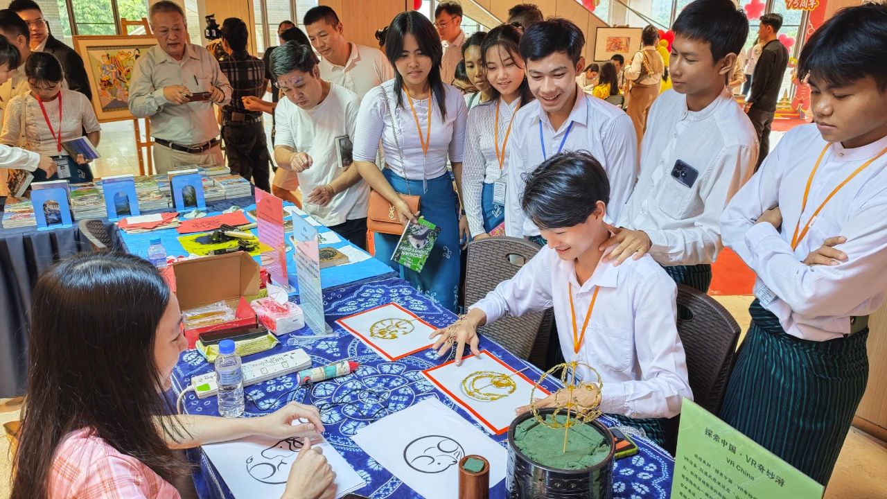仰光中国文化中心在现场开展了“你好!中国”文化和旅游宣传,所设置的“文创作品展示”“探索中国·VR奇妙游”“糖画”“拓印”“剪纸”“脸谱”体验等项目吸引了逾700名观众参与互动,1000余册《“你好!中国”旅游指南》系列图书也很快发放完毕。