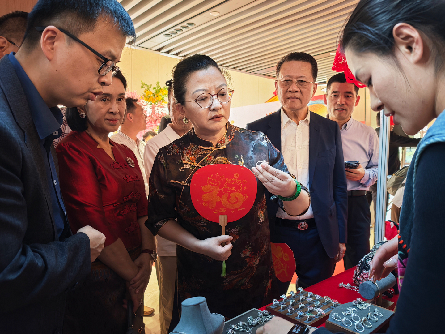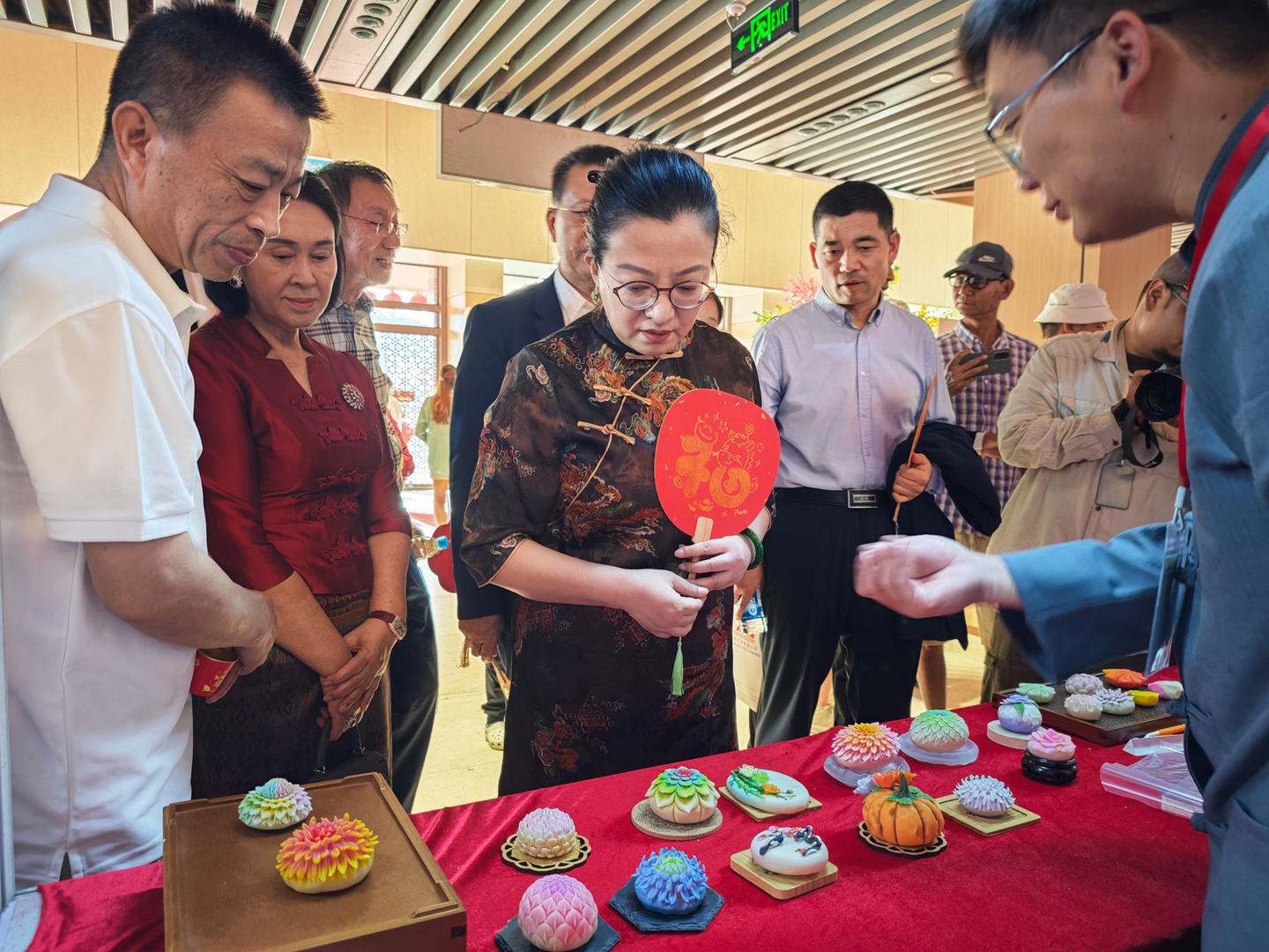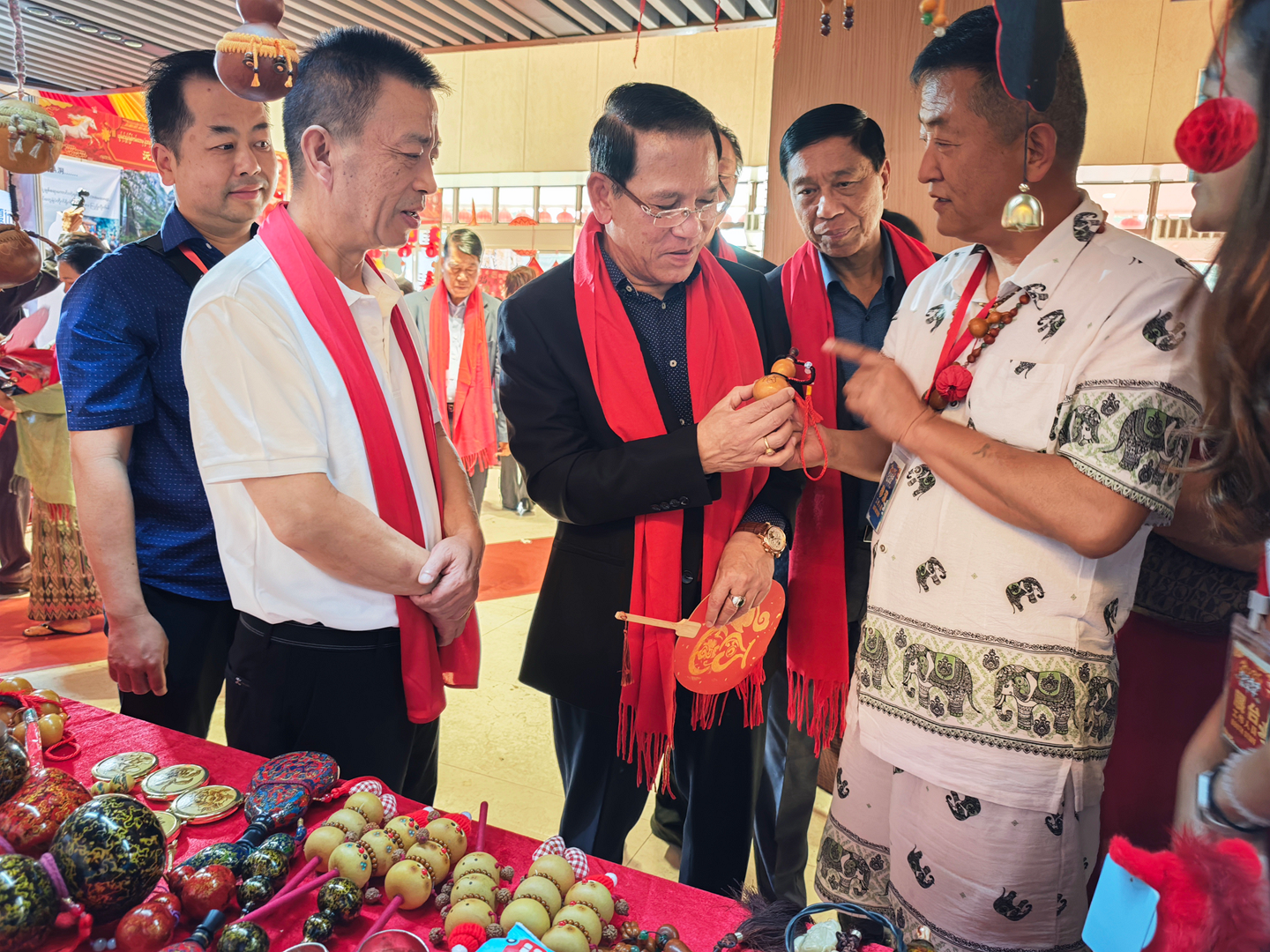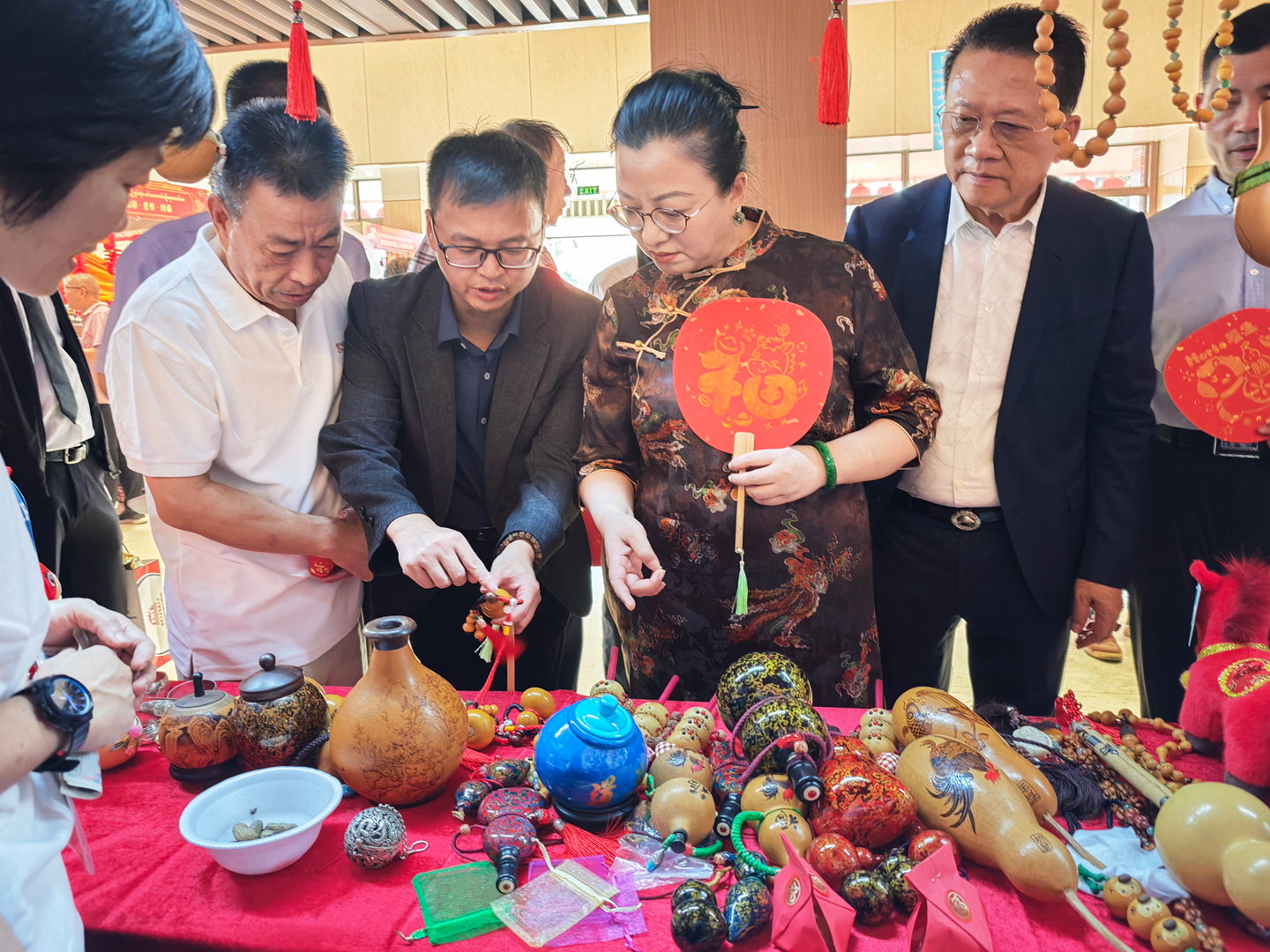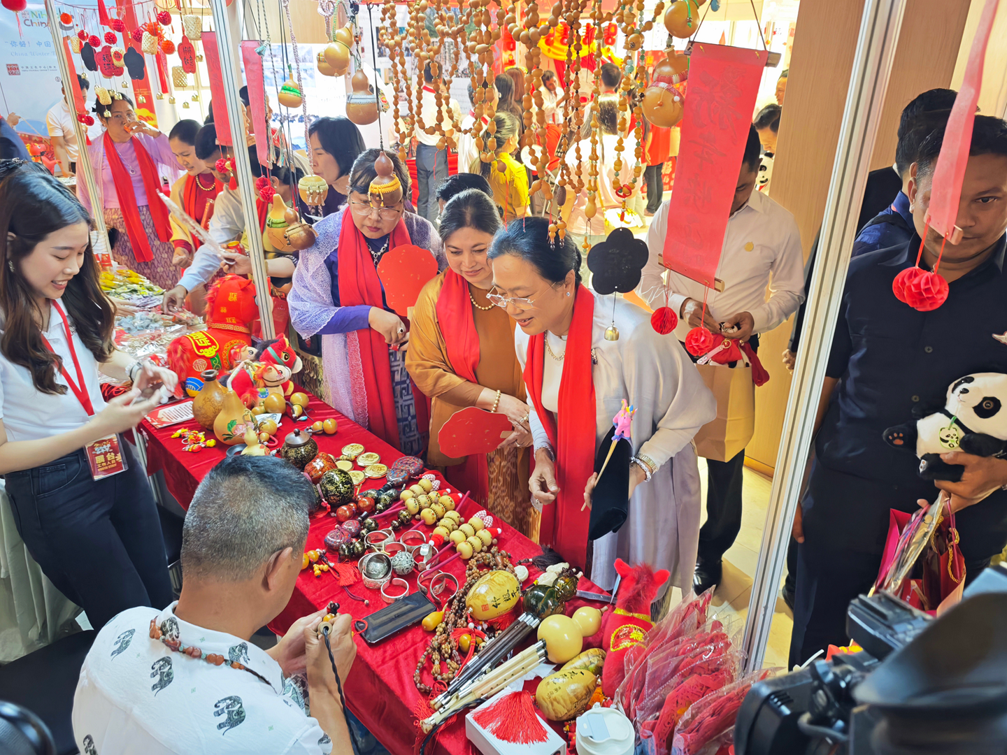 活动特设“春节集市”,联动中缅机构、商会、社团共同参与,集中展示中华节庆习俗、书法艺术、现代科技成果及中国各地传统美食、代表性景观。非遗沉浸式体验成为全场亮点:中国非遗传承人现场展演刺绣、剪纸、葫芦画、糖画、吹糖人、糖果子等传统技艺,搭配云南咖啡、茶叶、鲜花饼等特色物产,从视觉、听觉、味觉、触觉多维度呈现中华文化的厚重与鲜活。互动中,文化从单向展示变为双向共鸣,上千份非遗文创礼品被迅速认领,不少民众主动咨询了解,彰显民间文化交流的旺盛活力与持久生命力。