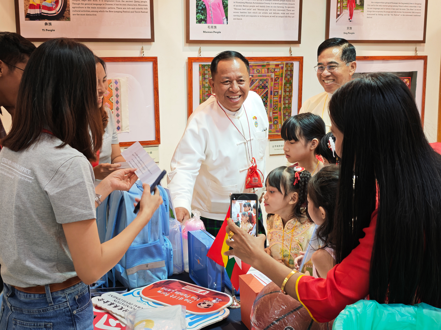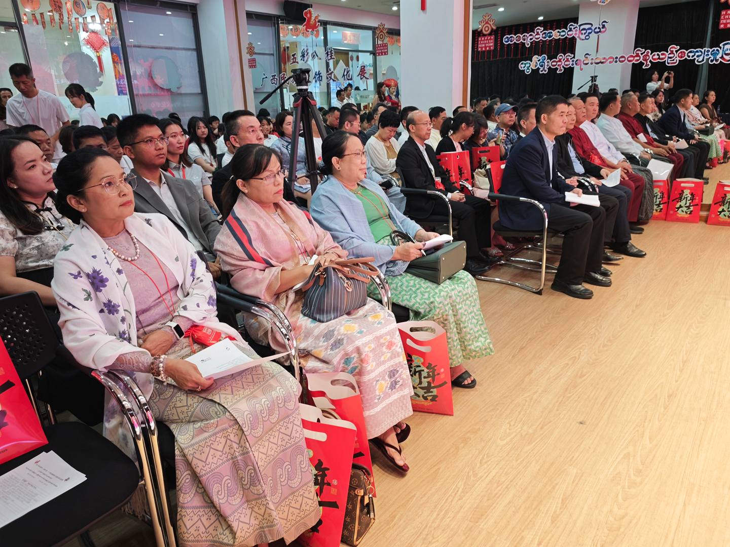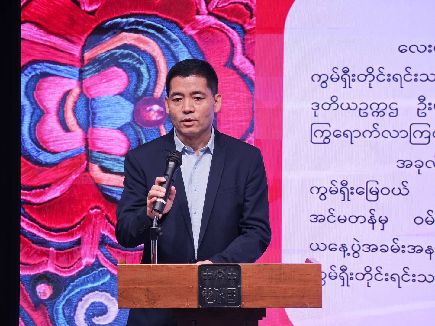 中国银行仰光分行、中国乡村发展基金会缅甸办事处、缅甸广西总商会、缅华书画协会为本次活动提供支持。中国驻缅甸大使馆李千国参赞,仰光中国文化中心主任向剑波,广西民族博物馆副馆长刘创举,缅甸国家博物馆馆长杜楠劳莹、国家图书馆馆长杜凯迪埃、缅中友好协会副主席吴汉林昂、缅华书画协会穆立瑞会长、妇女协会陈丽珍主席等中缅嘉宾,以及中资机构代表、当地师生、留学生近200人出席开幕式,李千国参赞等中缅嘉宾分别致辞。